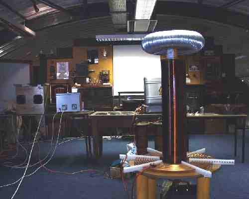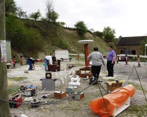 ___Meanwhile, Inside the Seaboard Museum of Electricity, things were going rather better, Steve Crawshaw, Steve Bell, Steve Cook and Viv Watts were all running their coils, the display was almost non-stop, with Steve Cook's tiny coil being especially popular.